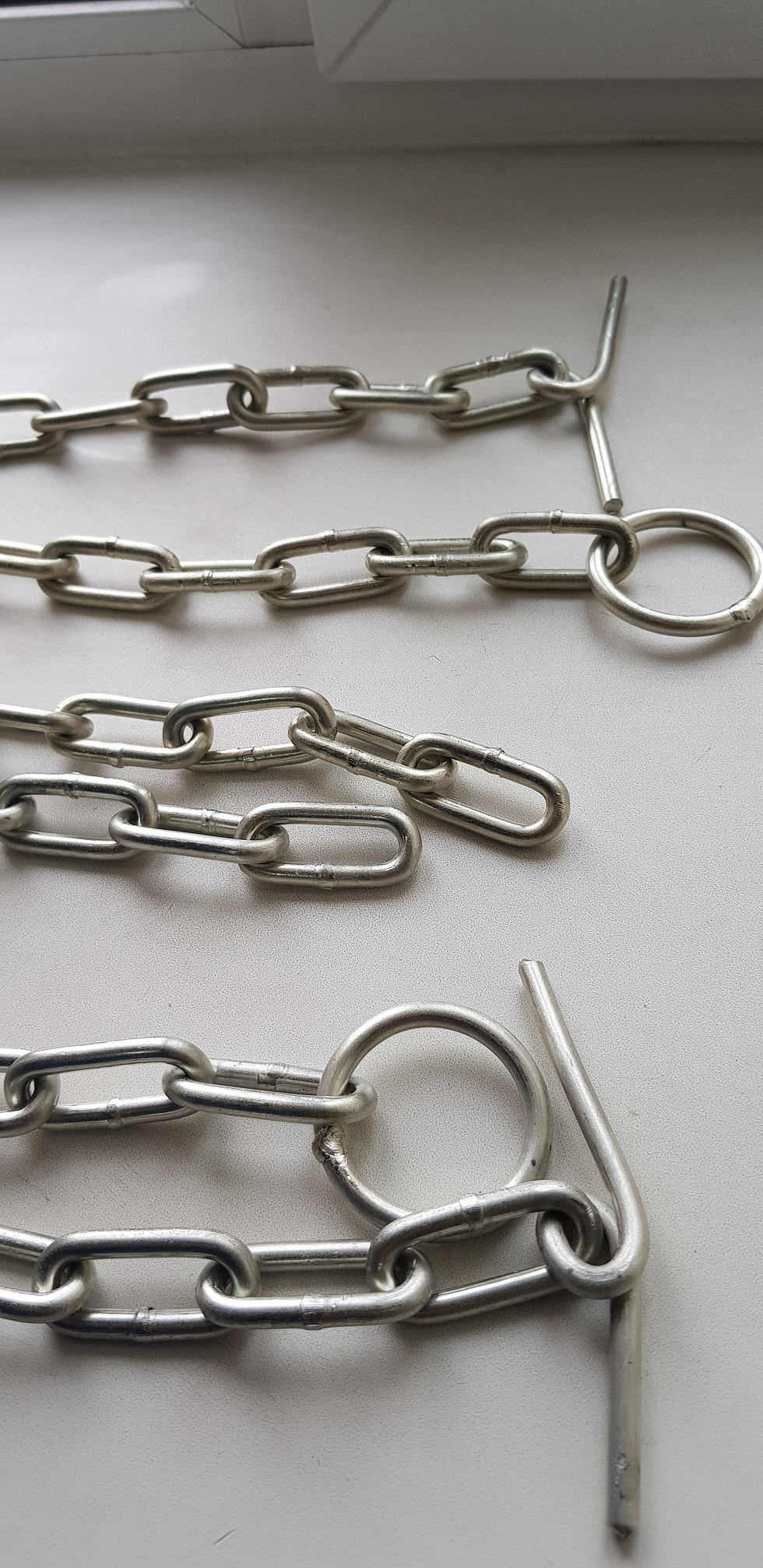 Применение: Цепи используются в областях, не связанных с приложением нагрузок. Цепи являются наиболее дешевыми, по сравнению с остальными типами цепей. Цепи используются в качестве комплектующих при сборке цепей противоскольжения, цепей для привязи скота, цепей для привязи собак, колодезных цепей. Материал: низкоуглеродистая сталь. По заказу: механическая обработка галтованием.